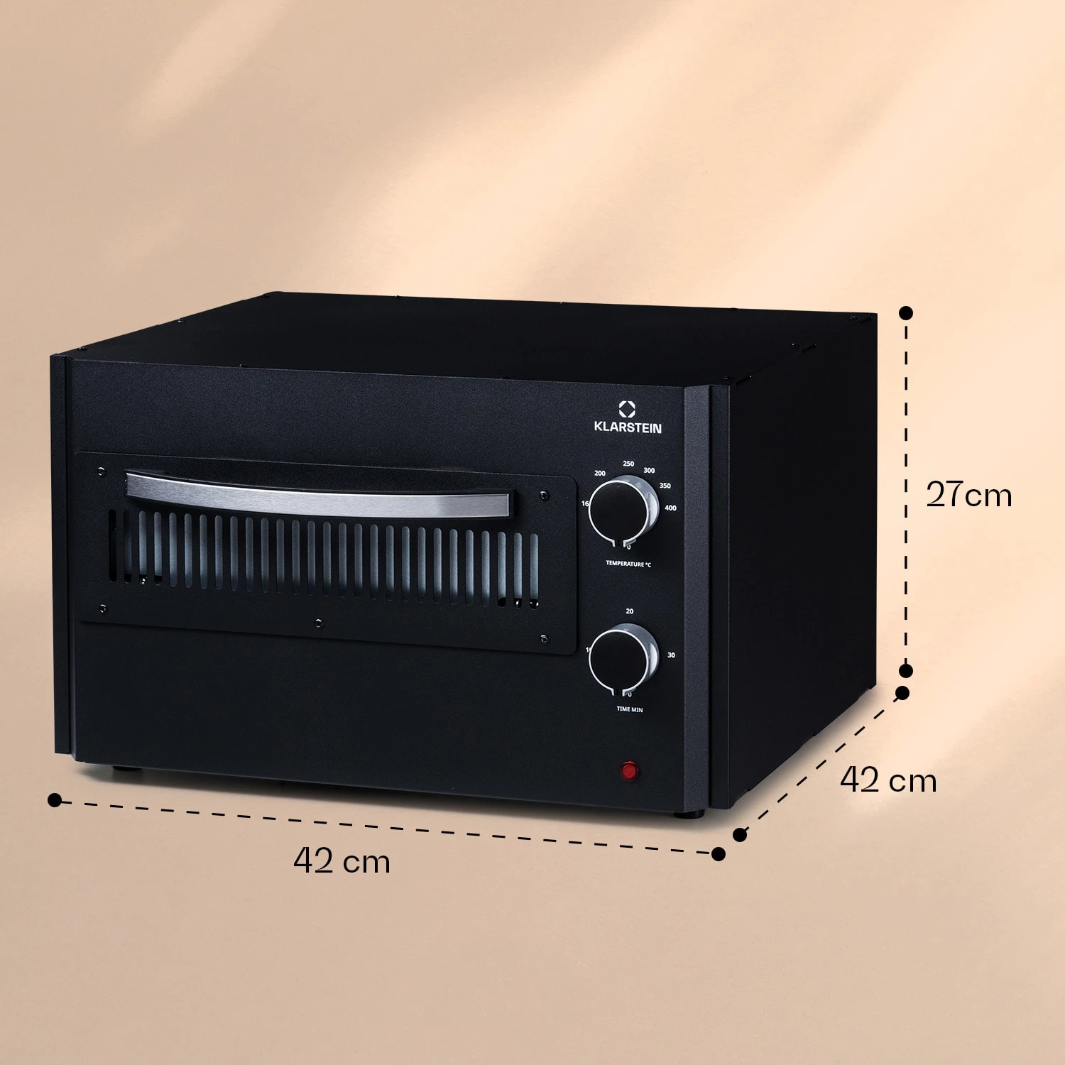 Knusprige Pizza wie aus Italien: Der einzigartige Pizza-Ofen Arezzo von Klarstein ermöglicht dir das Zubereiten von feiner Pizza und Speisen aller Art. Die unterschiedlichen Temperatureinstellungen sind perfekt abgestimmt, um beispielsweise auch Kekse, Croissants, Fischstäbchen, Pellkartoffeln oder Lasagne ideal zu backen. Ganz komfortabel kannst du an den vorderen Drehreglern das Programm wählen und den praktischen Timer einstellen. Der herausnehmbare Pizzastein ermöglicht dir zudem die Zubereitung von Speisen direkt auf dem Rost. Einen besonderen Vorteil erlebst du hier, da du die Blende der Schiebetür herunterklappen und so deine Pizza ideal hineinschieben und anschließend wieder herausziehen kannst.
