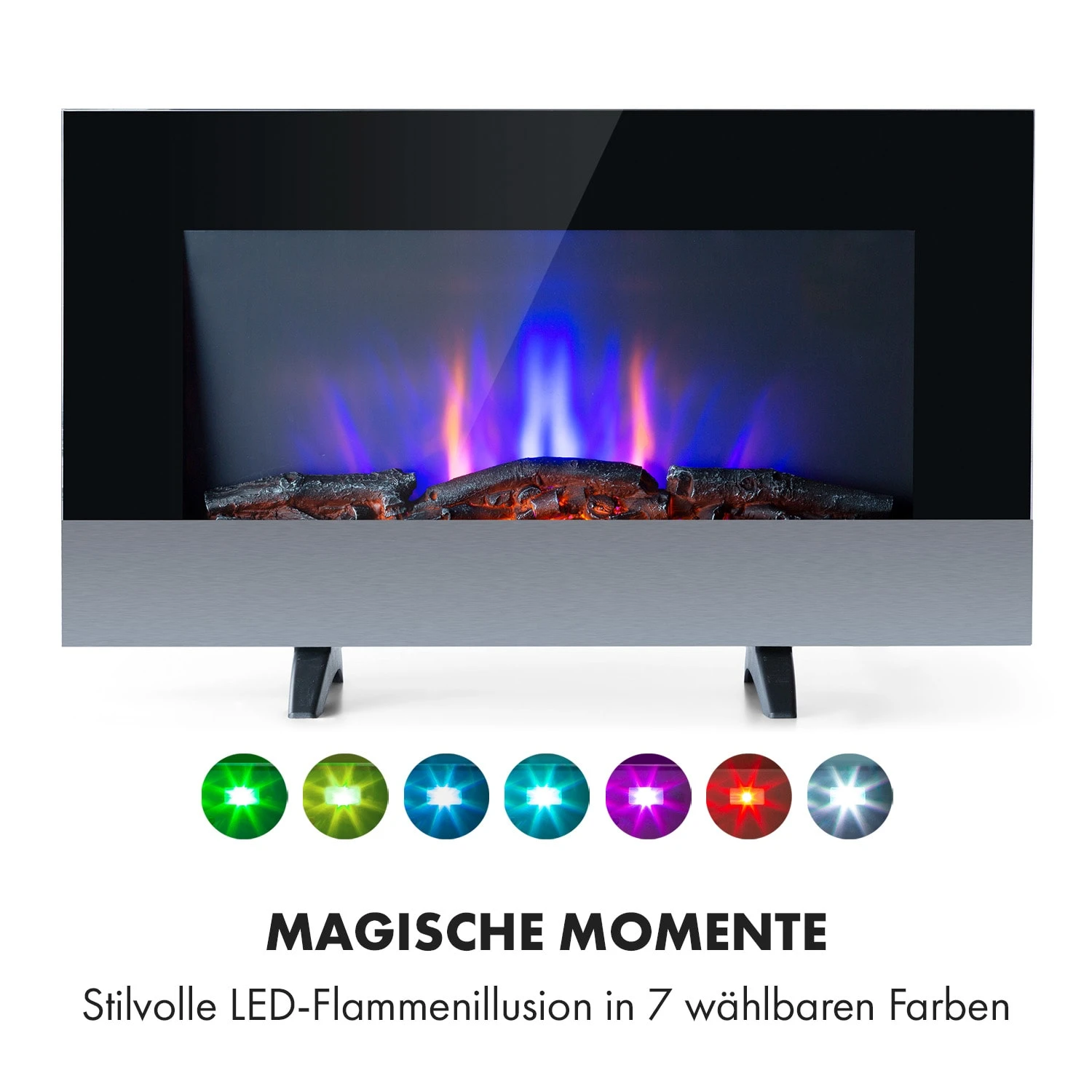- LED-Flammenillusion in 7 wählbaren Farben