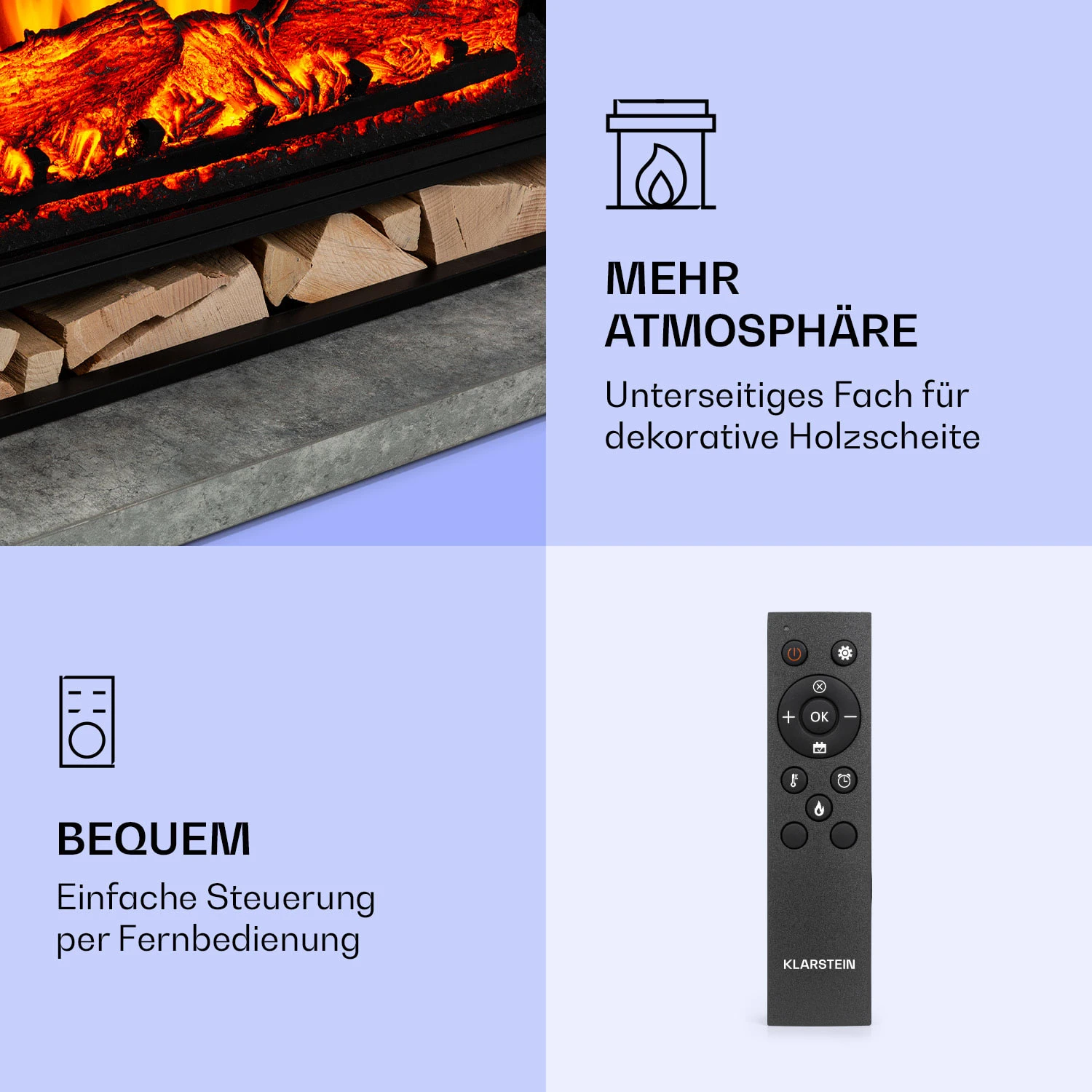Gemütliche Atmosphäre zu jeder Jahreszeit: Genieße mit dem Klarstein Crater Lake Elektrokamin ein Flammenspiel ohne Rauch oder Feuer. Lass dich von der realistischen Feueroptik verzaubern und entspanne gemeinsam mit Partner oder Partnerin, Freunden oder der Familie an deinem neuen Lieblingsplatz. Ganz nach Wunsch kannst du die LED-Flammen in 4 Helligkeitsstufen leuchten lassen. An kühleren Tagen sorgt die zuschaltbare Heizfunktion für ein warmes Zuhause. Gesteuert wird der Crater Lake ganz bequem per Fernbedienung oder über das Touch-Bedienfeld am Gerät. Besonderen Komfort bieten die automatische Ausschalt- sowie die Wochentimer-Funktion.