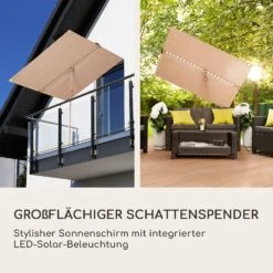 Belo Horizonte Sonnenschirm Sonnenschutz Ø 292cm Polyester Wasserabweisend Inkl. Standbasis Creme