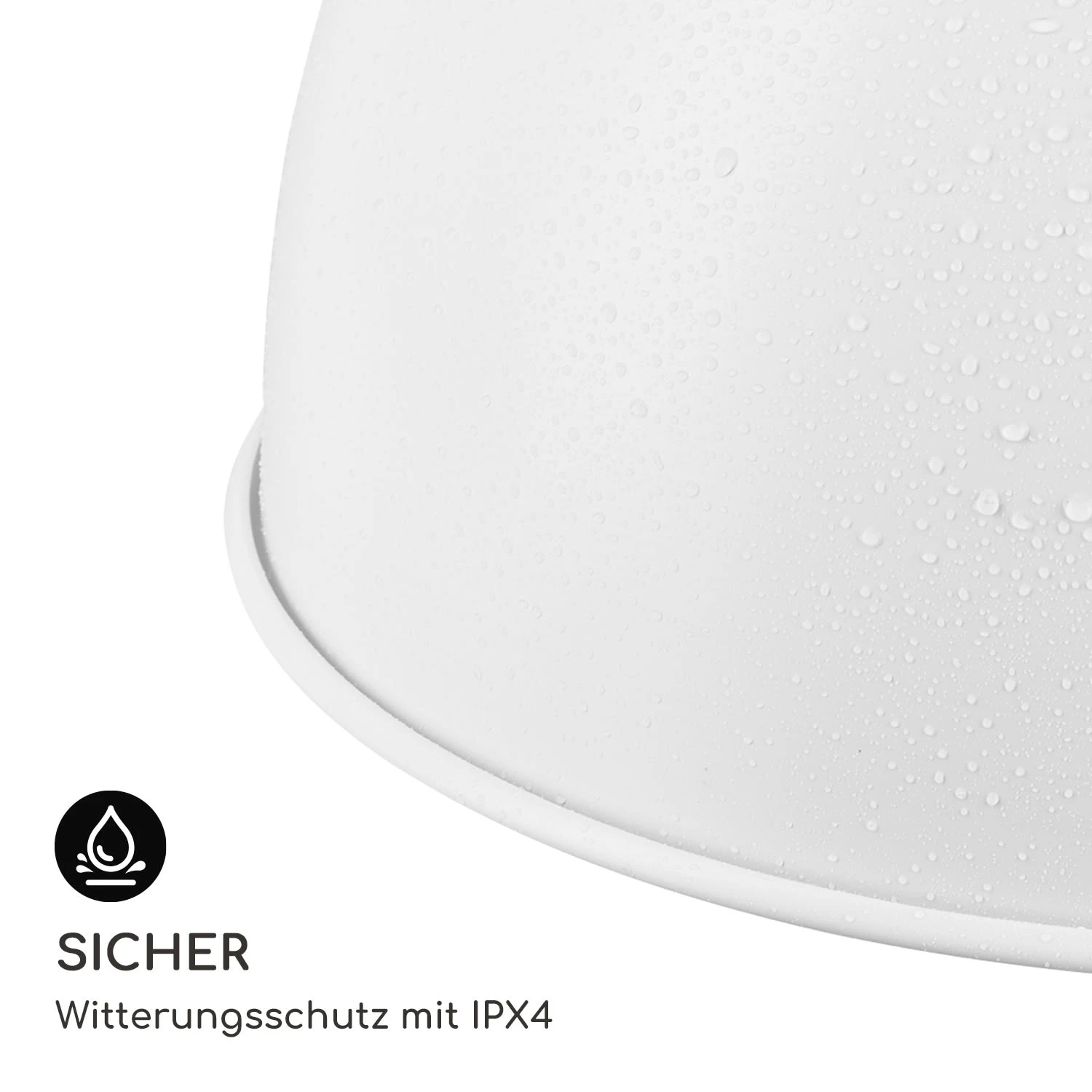 - Schutzart: IPX4 (geschützt vor Spritzwasser)