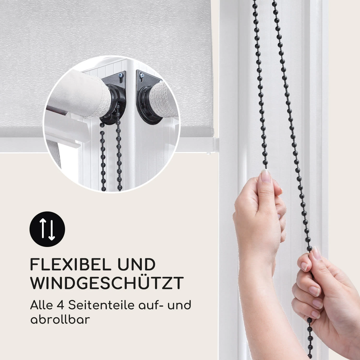 Mit dem stufenlos raffbaren Stoffdach aus 180 g/m² Polyester erhältst du die volle Kontrolle über Schatten und Sonne. Der Seilzug lässt das Sonnendach des Pavillons in seinen Führungsschienen geschmeidig vor- und zurückgleiten, die wasserabweisende Beschichtung schützt vor Schimmel und kurzen Regenschauern. Durch die flexibel auf- und abrollbaren Seitenteile aus 160 g/m² Polyester-Stoff bleibst du die ganze Zeit windgeschützt.