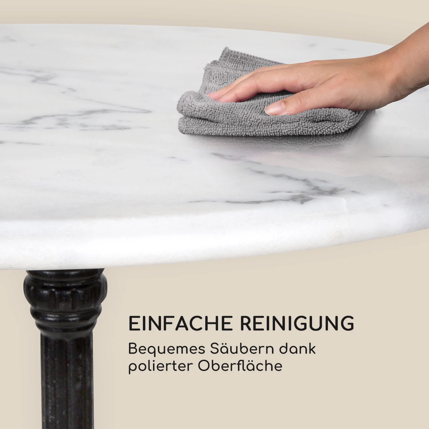 Ob für das Frühstück auf dem Balkon oder zum geselligen Kaffee im Wohnzimmer: Der Patras Taverna Marmortisch von Blumfeldt bietet immer das richtige Ambiente und wird überall zum dezenten Blickfang.