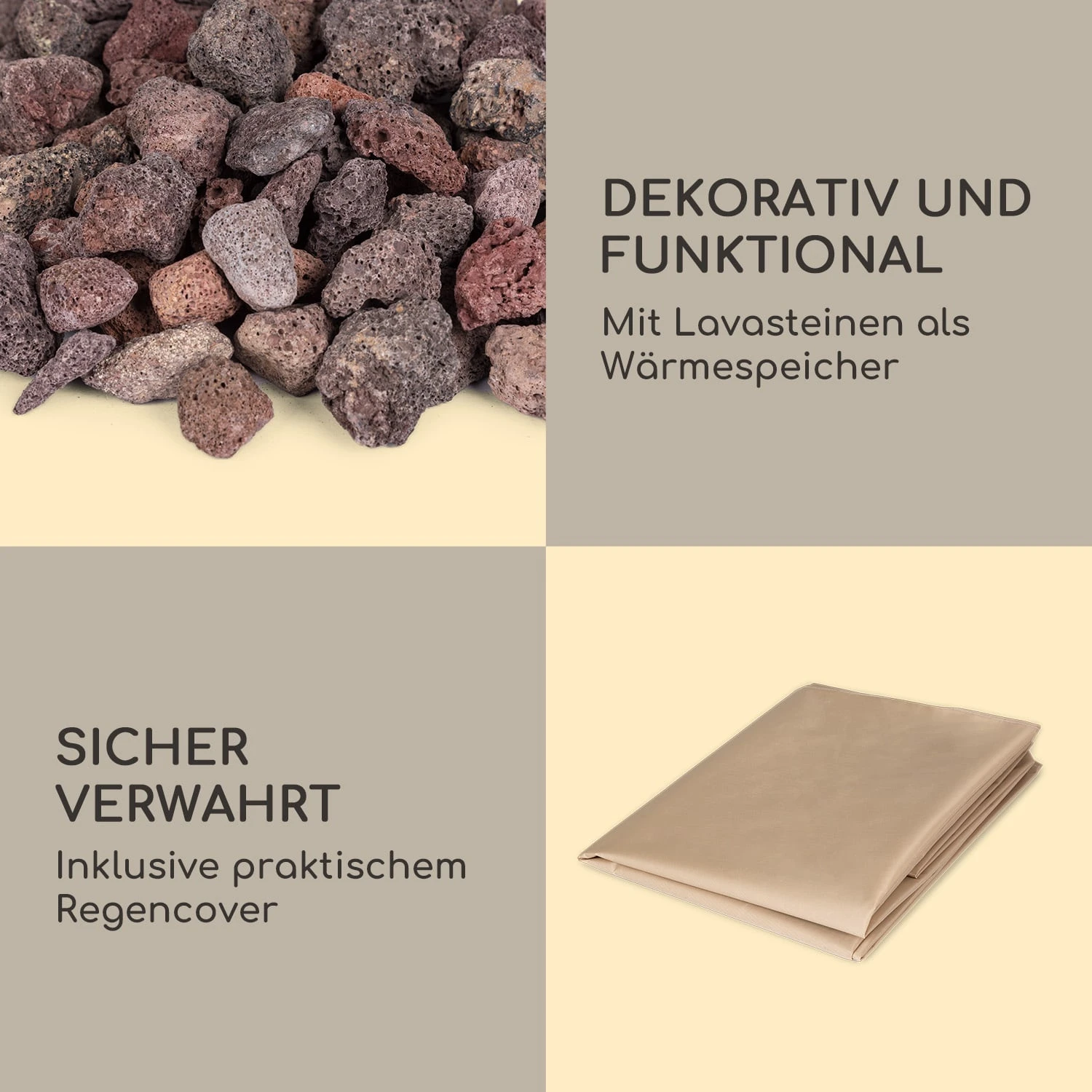 Prati Gas-Feuerstelle 13 KW Elektrisches Zündsystem Lavasteine Inkl. Regenschutz