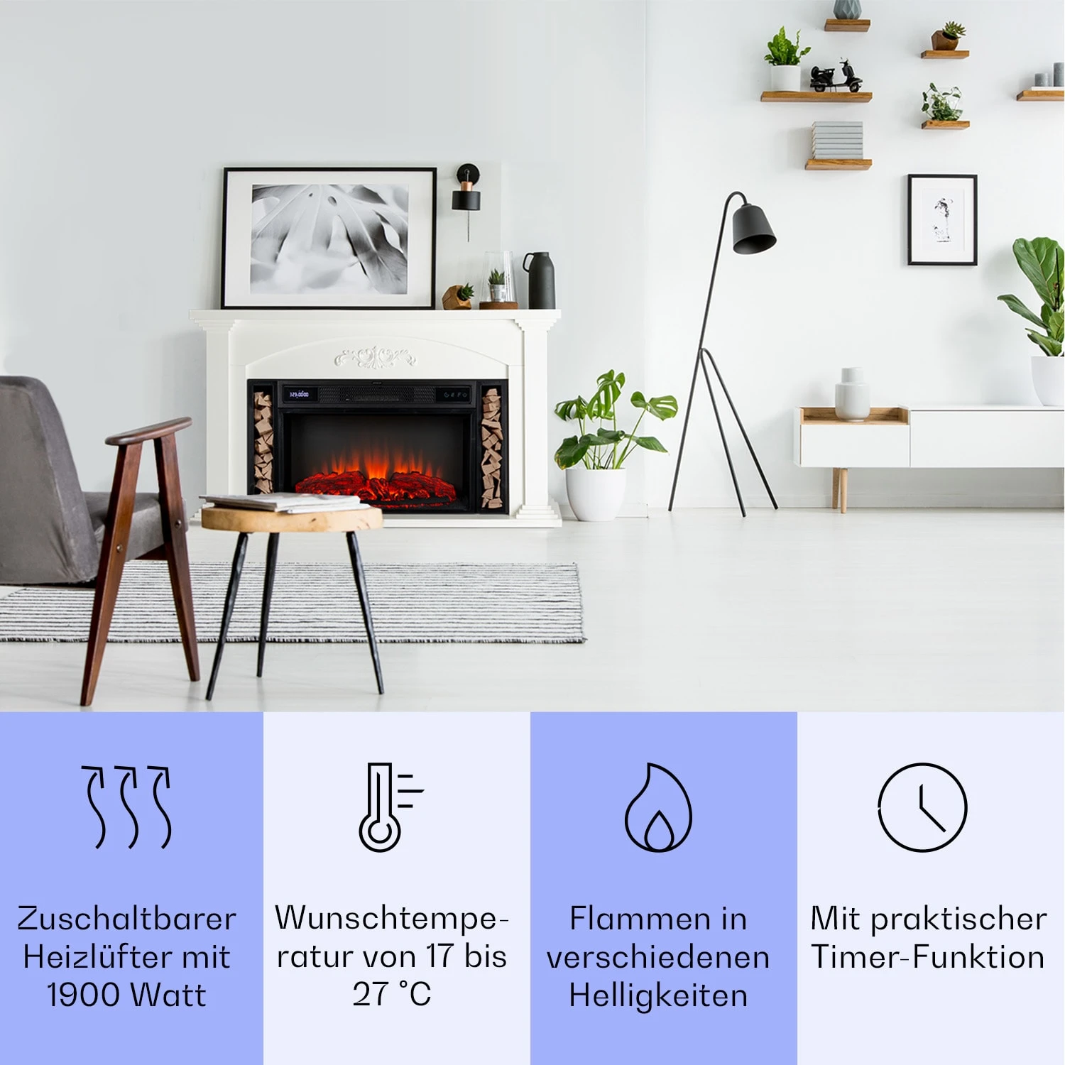 - elektrischer Kamin mit realistischer Feuer-Illusion